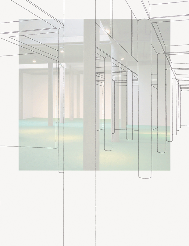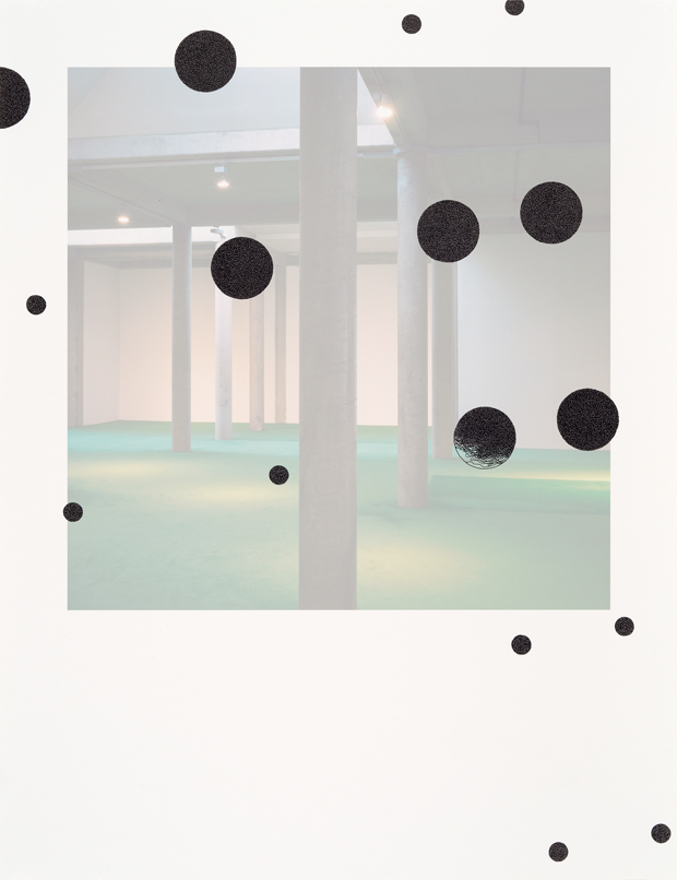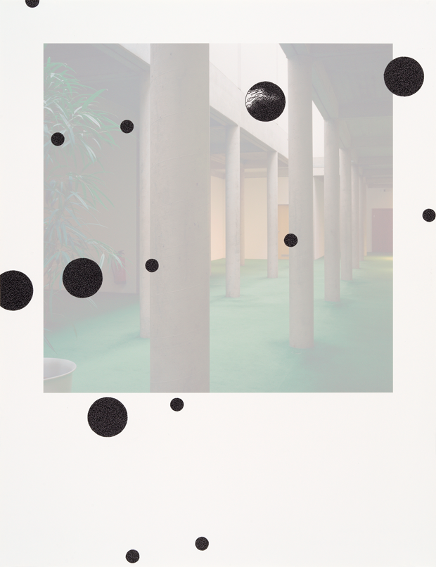 Analoge Aufnahmen der Architektur von St. Virgil in Salzburg (Wilhelm Holzbauer, 1965–76) bilden den Ausgangspunkt für diese Serie. Sie stehen im Mittelpunkt und bilden das Thema der Arbeiten ab, nehmen sich aber durch absichtlich blasse Reproduktion zurück, um mit den zeichnerischen Akzenten die Bühne zu teilen. Diese von Hand gezeichneten Kreise folgen dem strengen Muster des architektonischen Grundrisses der Säulenkonstellation, das durch intuitiv gesetzte Vergrößerungen der Säulendurchmesser durchbrochen wird.