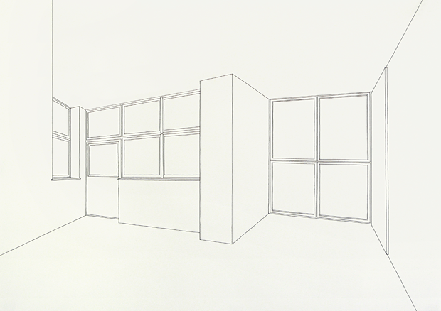 Untitled (from the series: Looking for Rietveld), 2013, ink on paper, 42 × 60 cm