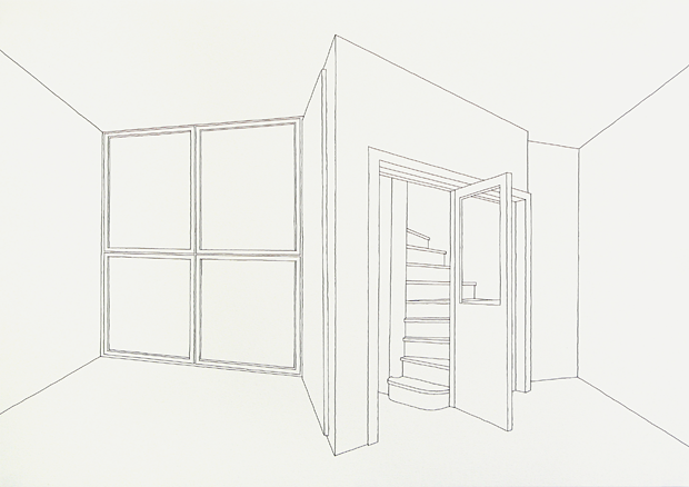 Untitled (from the series: Looking for Rietveld), 2013, ink on paper, 75 × 98 cm