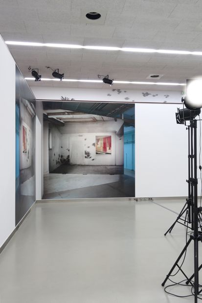 Add-on, 2015, digital print on wallpaper, temporary installation installation views of the exhibition "Jump the Line", Kunsthalle Nexus, Saalfelden / Austria